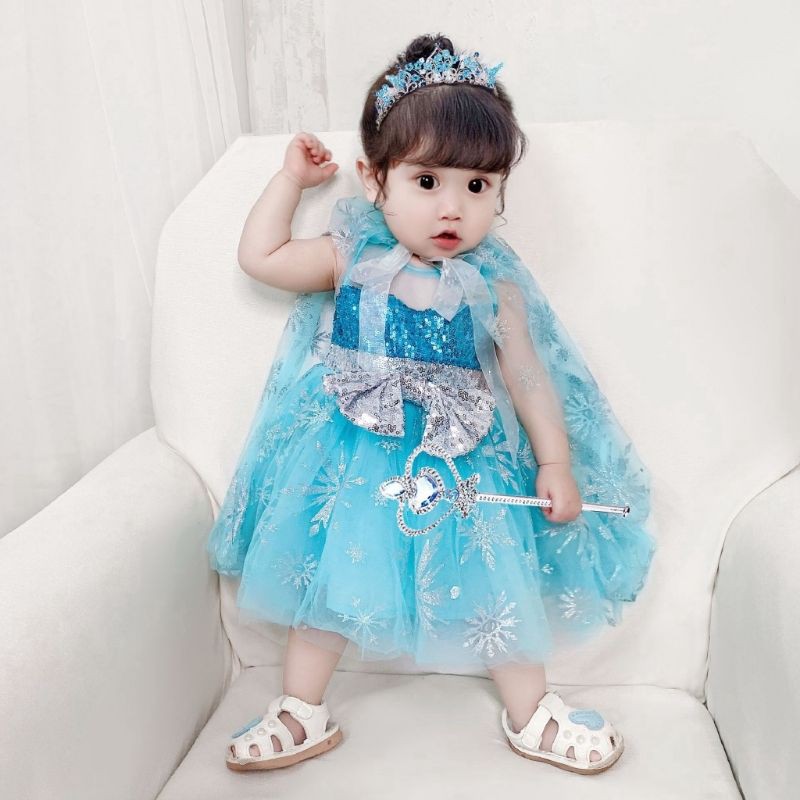 New Baby Tutu Dress Costume Frozen With Cape Blue Pink Shopee Philippines